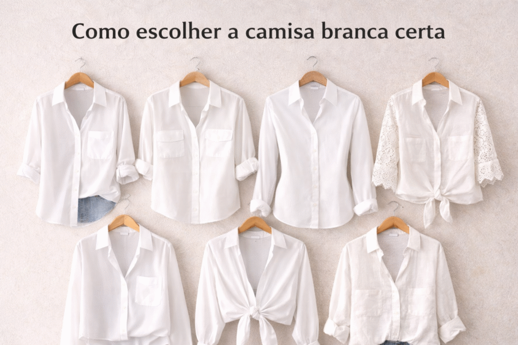 Se você sente que “camisa branca fica formal demais”, quase sempre o problema está em caimento, tecido ou combinação.