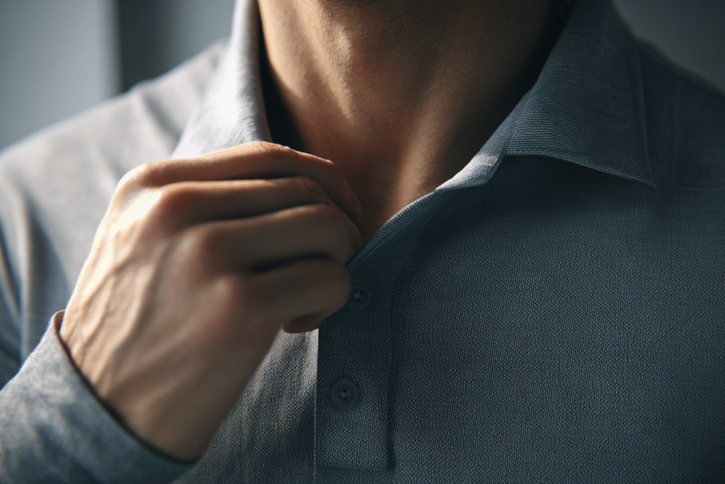 Quando a camisa polo é usada com proporção e firmeza, ela deixa o homem instantaneamente mais jovem e alinhado. É um ajuste de um minuto — e talvez o mais fácil entre os 7 erros que envelhecem o homem de resolver.