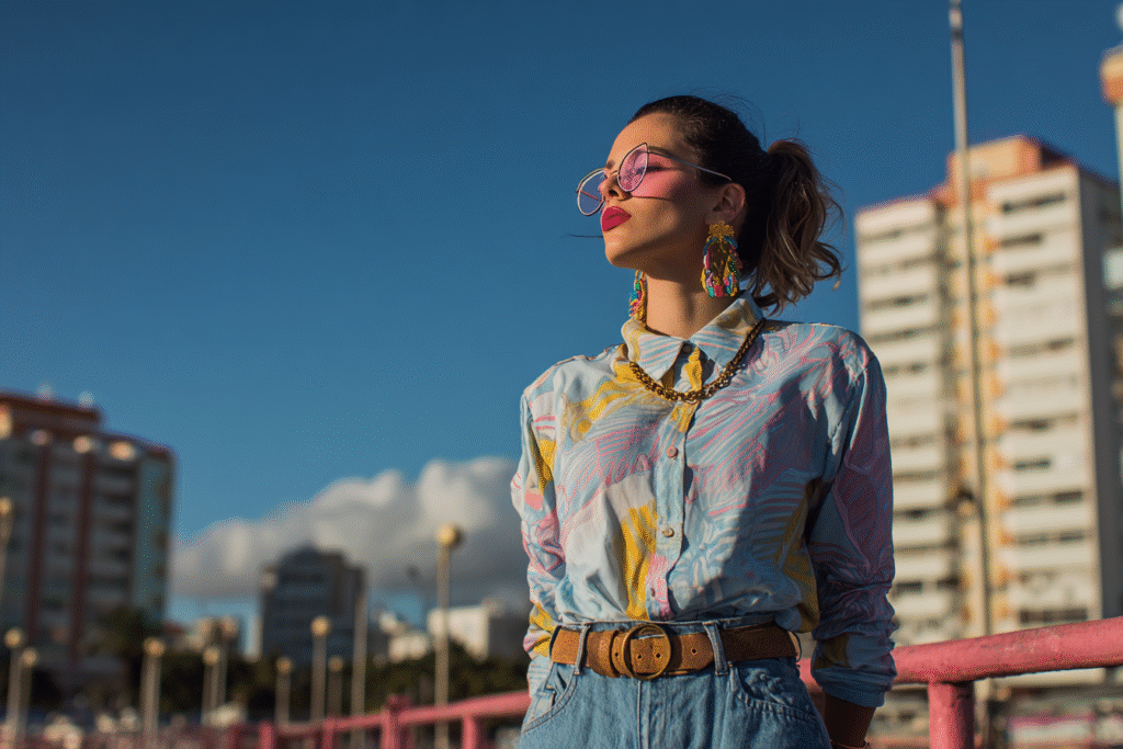 Além de marcar presença, as cores neon refletem confiança, ousadia e personalidade. São escolhas ideais para quem quer sair do óbvio e trazer um pouco da energia da década para o presente. Usar estampas vibrantes é reviver o espírito ousado dos anos 80 com um toque atual.