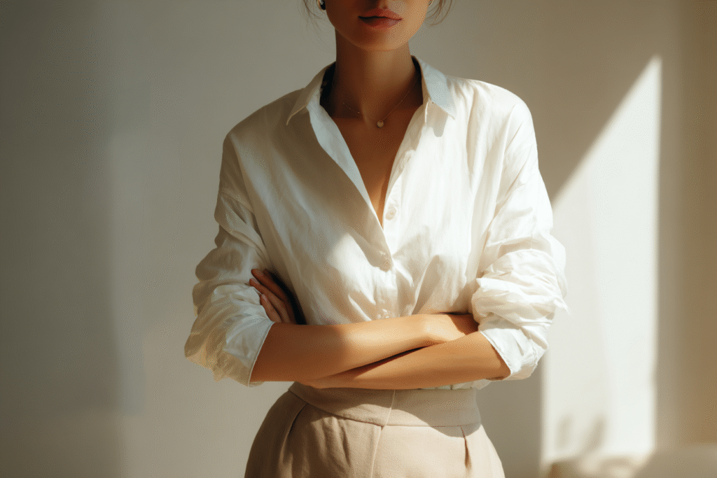 Dobrar a manga muda completamente a leitura do look. O gesto adiciona casualidade à produção, mantendo um toque elegante. Entender como dobrar a manga da camisa para um ar despojado e chic ajuda a equilibrar formalidade e descontração.
