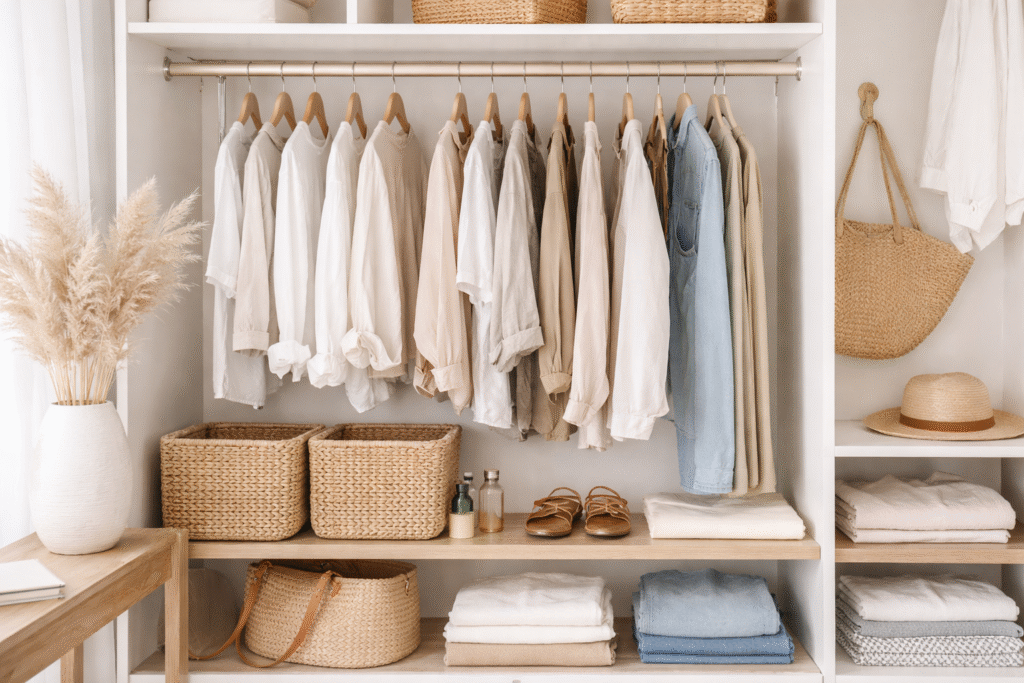 Ao falar sobre Como montar um guarda-roupa cápsula para o verão: guia completo para um estilo leve e funcional, não podemos ignorar a importância da organização. Um armário bem estruturado facilita a visualização das peças e ajuda na criação rápida de looks. Manter tudo visível, limpo e categorizado torna a experiência de se vestir muito mais simples.