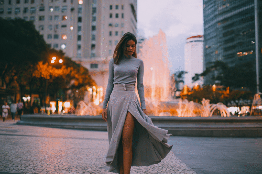 Uma das principais características da saia corola é o caimento fluido e o volume que começa a partir da cintura. Isso cria uma silhueta muito favorecedora, especialmente para quem deseja equilibrar o volume do corpo. Essas qualidades reforçam seu papel dentro das saia corola inspirações e tendências da moda atual.